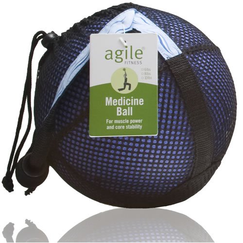 6 lb Black rubberized Medicine Ball has non-slip and grippy surface and comes in form-fitting black mesh bag. Medicine Balls are the staple training tool used by personal trainers for Core Training and Plyometric exercises. Rubberized surface provides strong bounce and tapered foam grip handle on Mesh Bag extends medicine ball use to: Lateral Flys/Bicep Curls/Overhead Presses/Bentover Rows. SIZE: 6 lb (8.75 inch diameter) - also available in 8 lb and 10 lb sizes. COLOR: Periwinkle Blue.